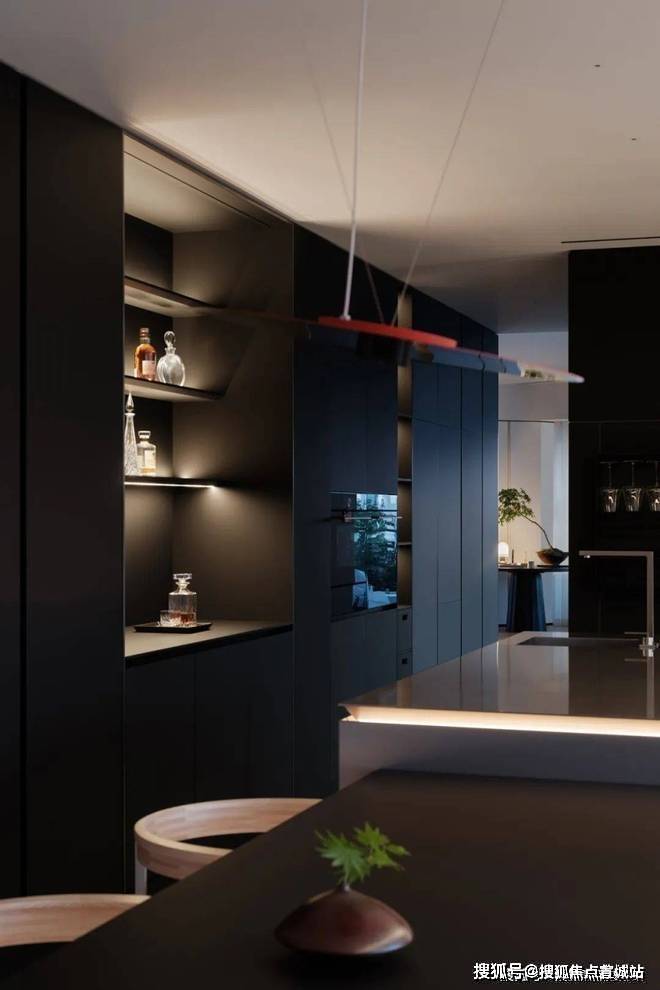 越秀杨浦天玥售楼处营销中心:400-8828-814越秀杨浦天玥售楼处电话/地址☎:400-882-8814(开发商热线)餐厅区域放置一个餐边柜,同样选用了雪山飞狐奢石做透光台面设计,餐边柜在收纳储物方面具有显著作用。