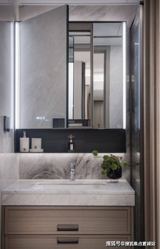 背后主墙面采用岩板设计,经久耐用,内部的收纳细节还预留4孔电源,电动牙刷、卷发棒等吹风机收纳孔、洗脸巾抽取孔。越秀杨浦天玥售楼处营销中心:400-8828-814越秀杨浦天玥售楼处电话/地址☎:400-882-8814(开发商热线)
