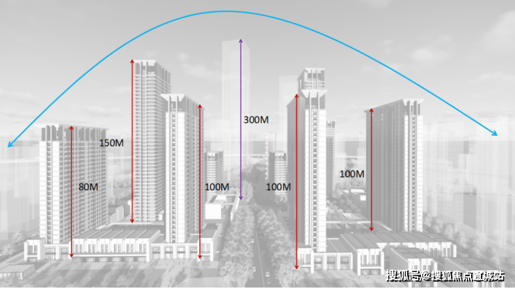 立面材质:一期采用沙特宝金石与石材干挂工艺,二期 1-2 号楼打造约 140 米超高层地标,加大窗墙比。