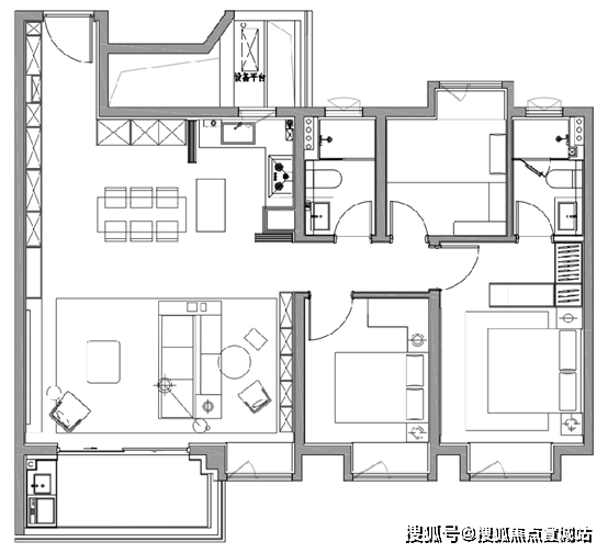 128㎡ 3+1房2厅2卫户型图如下:保利建工海玥锦上售楼处电话:400-998-9694