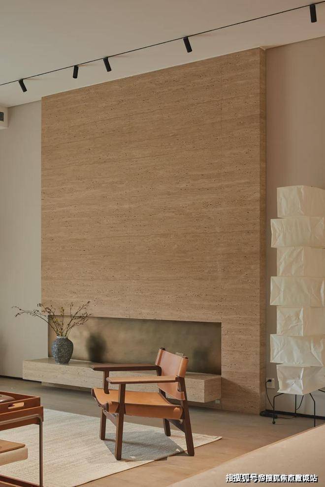 我们有意识地避免过度装饰,追求一份随性自在的松弛。空间中的质感、肌理、颜色给人的感触是温润的。深黑素雅的墙面,给予想象的静谧感;在暖色光源的照射下,如同温柔的拥抱;天然洞石拥有接近自然表皮的肌理,有着拙朴之美,带给人安定的情绪。