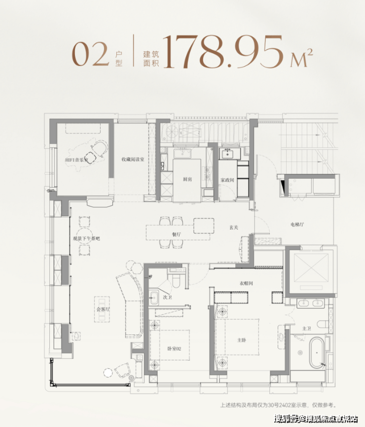 以建面约179㎡的边套为例,并未将北房间局限为常规卧室,而是灵活打造为HIFI音乐室与收藏阅读室,既可作为业主的灵感工作室,也能成为孩子的兴趣天地;