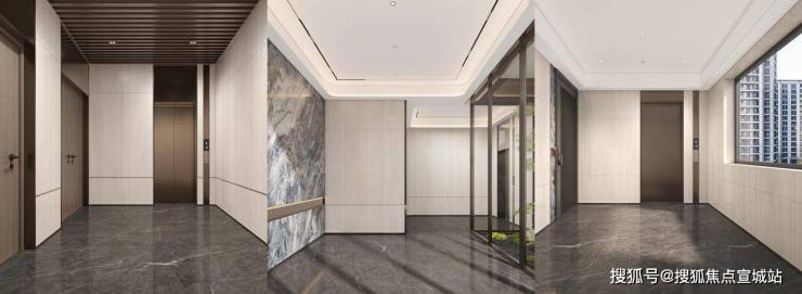 【统一美学标识】从大堂门厅、电梯轿厢至入户,统一的设计语言与精工细节让品质感贯穿归家之旅。
