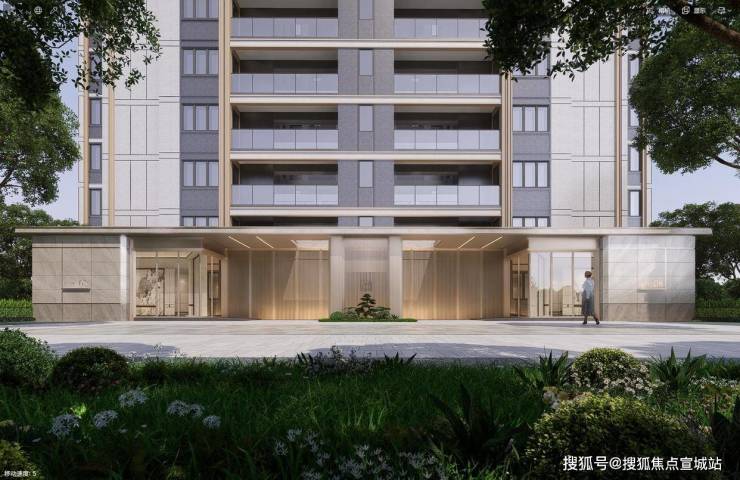 超配入户尊崇:奢阔入户大堂,突出挑檐设计,以光影艺术为归家增添仪式感。