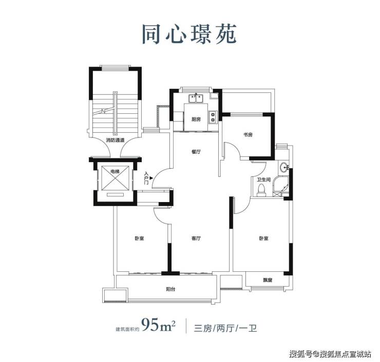 主力户型95㎡三房95145-1523室2厅1卫,宽境阳台