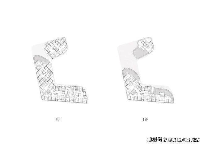 制约条件重重,如何在异形轮廓中创造出符合规范、经典舒适、景观最大化的户型平面,是设计师需要考虑的另一难点。同时,层层退台的形式也为管线机电排布和结构等专业的配合带来更多挑战,设计师除了横向维度的考量,也要纵向组织多样化、跨学科的设计技术问题。