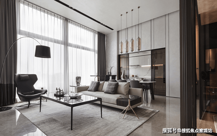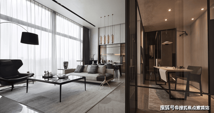 整体简约的现代主义风格令人安怡,沉稳温丽的色调下,线条利落有致,格局清晰,结构性强,空间质感不言而喻。