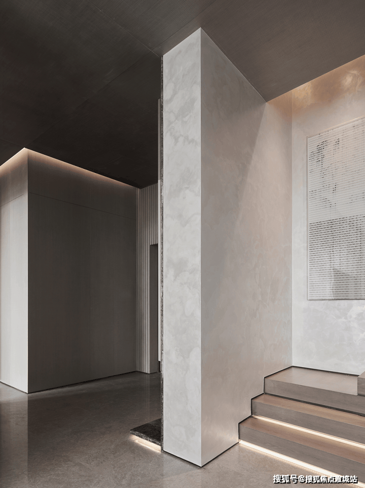 客厅另一侧以都市建筑为意象,构成跃层空间。