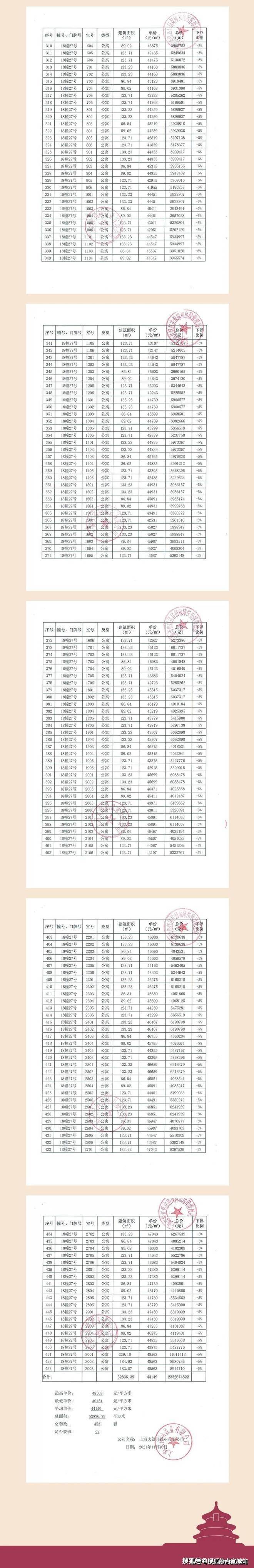 项目一房一价表▼