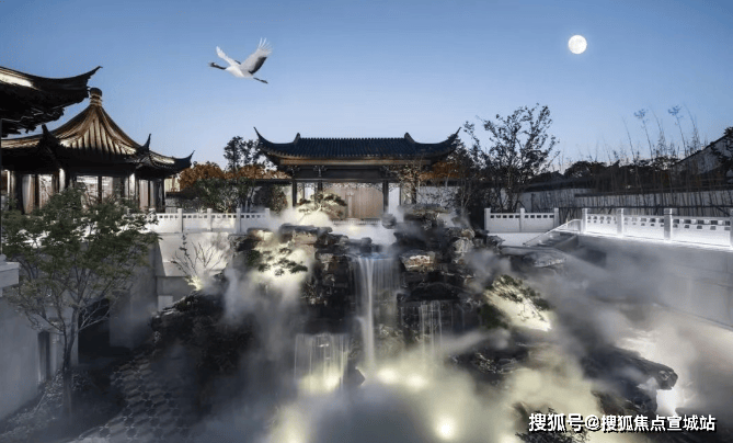 建筑风格:新中式风格,粉墙黛瓦,飞檐翘角,融合江南园林与现代居住理念
