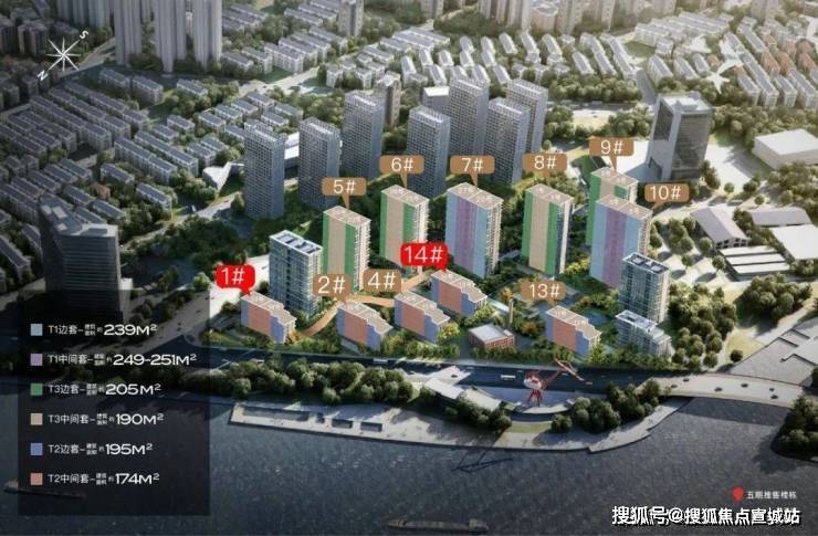 总户数与楼栋规划:规划户数 832 户,总楼栋共 14 栋,包含 5 栋 22 层住宅、1 栋 21 层住宅、1 栋 19 层住宅、1 栋 15 层住宅以及 6 栋 8 层住宅,西低东高的排布能最大程度利用江景资源。