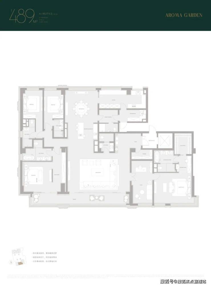 露香园·天誉约489㎡的整体面宽是4个产品中最宽的,达到了约26米,比另外三个产品多了4米左右,相当于多出了一个开间,另外三个指标性项目互有来回,包含玄关空间尺度、厨房空间尺度、次卧面积尺度,整体是一个以大面宽为核心竞争力,较为均衡的产品。