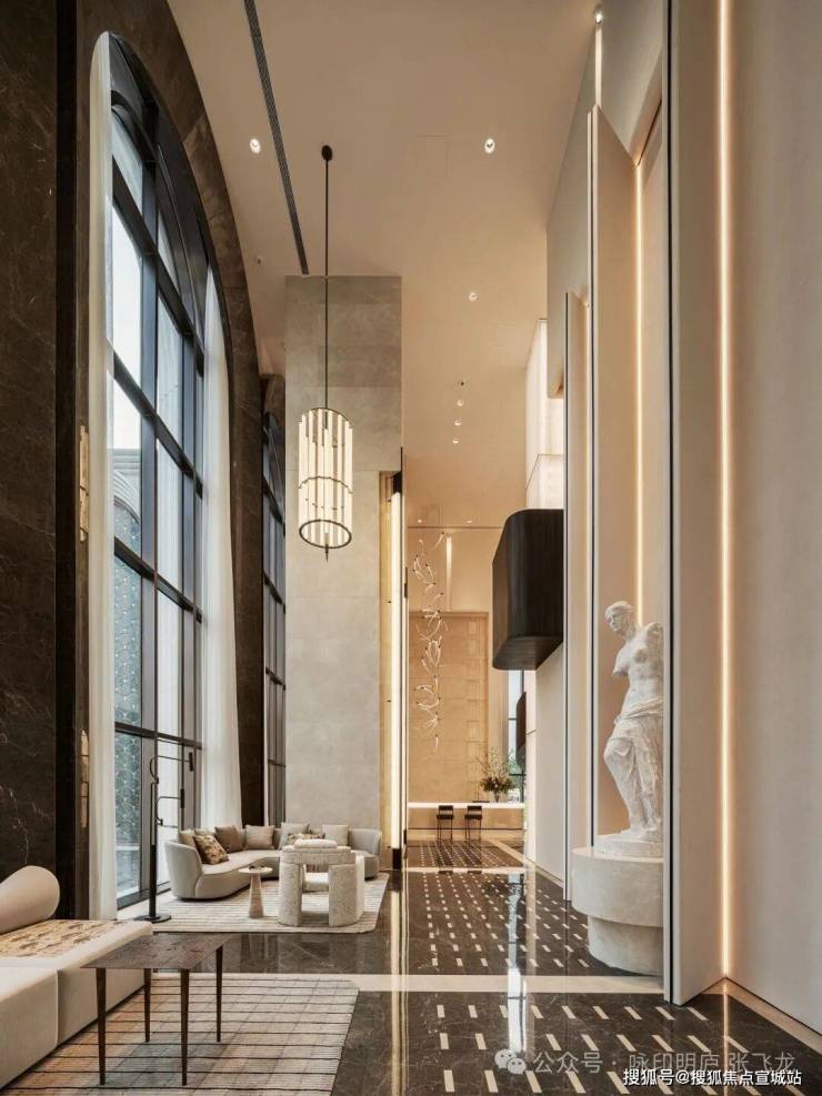 将人车分流升级为人、车、物极致细分的归家动线,业主经拱券入口、仪式前场、归家大堂、园中游赏、单元入户五大节点循序归家。名谷设计潘冉执笔,每个架空层皆极致定制专属美学符号与功能区域,精准覆盖业主的个性化需求。