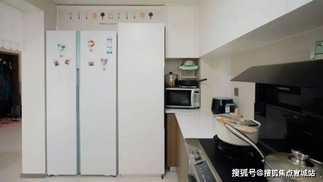 奶白上柜为视觉膨胀色,托起对纯净的向往,使得层高显高10%;栗棕下柜为收缩色,形成视觉锚点,避免头重脚轻,并承载着柴米油盐的烟火气;灰白地面则是连接二者的时光走廊。就像意大利导演费里尼说的:"生活的味道,总在咸淡之间。"