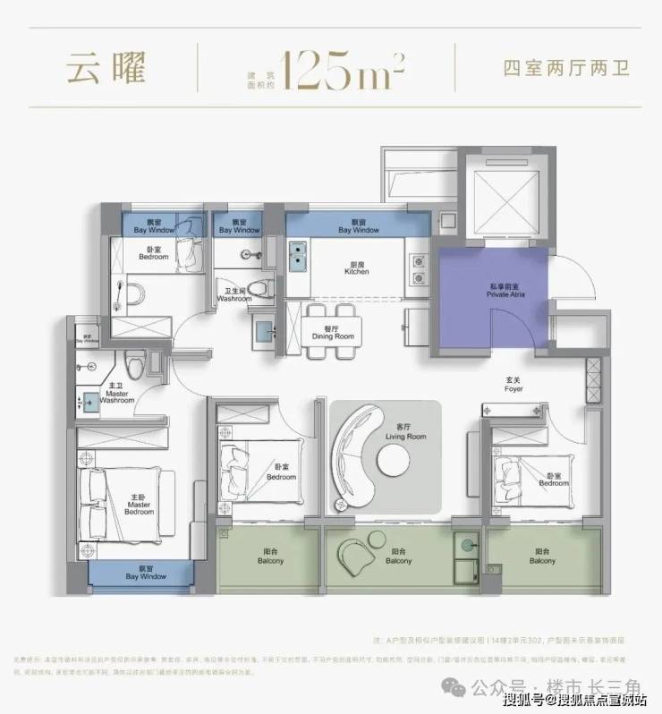 创新“三阳台分区功能”:景观阳台、生活阳台、次卧阳台各司其职,解决“晾晒占用休闲空间”的生活痛点;