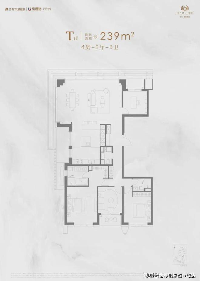 建面约239㎡边套,采用L型转角落地窗,打造了270°环幕瞰江视野。
