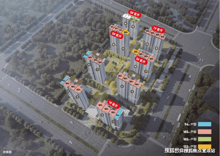 项目共计规划8栋14-18F高层住宅,规划可售住宅套数528套,主力建面约94-122㎡3房,功能齐全,足够匹配不同家庭结构的需求。