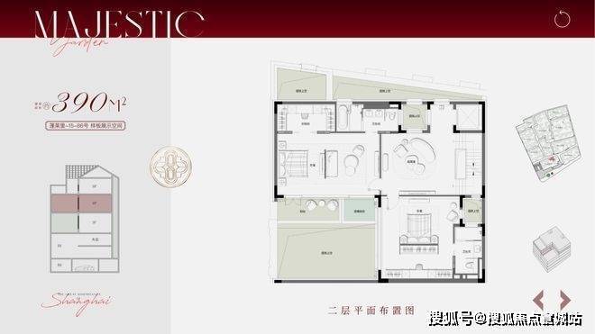合院地上三层,面积段约270-500㎡,计合院82套。