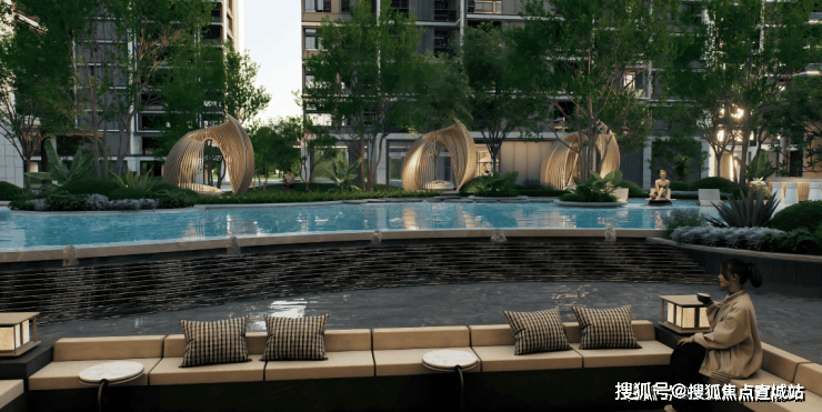 正是绿城首度落地的3.0泳池综合体。这一空间位于社区核心,归家必经之路上,融合中心泳池、林下客厅、卡座与廊架,成为串联生活场景的视觉与功能中心。与立体水院动静相衬,约34米泳池深浅分区,满足孩童嬉戏与成人畅游。池畔一侧为健身区,一侧为书吧,运动挥汗与静心阅读和谐并存,让身心各得其所。