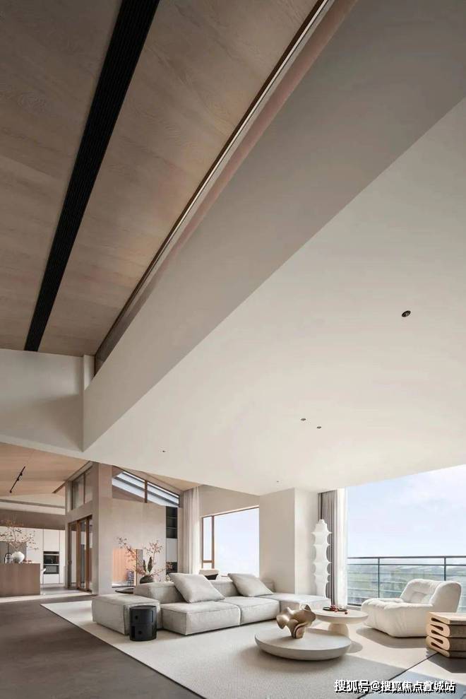 这个空间的设计很独特,既通透又有层次感。巧妙的错位设计,让每个空间都有自己的尺度感。