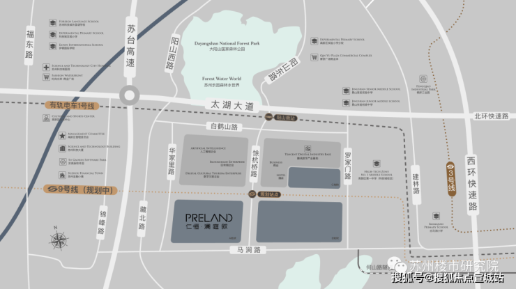全龄教育资源:苏州外国语学校附属阳山幼儿园/苏州高新区实验小学分校秦馀小学校/苏州高新区景山实验初级中学/苏州高新区第一中学科技城校区;