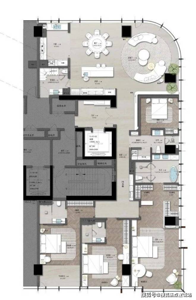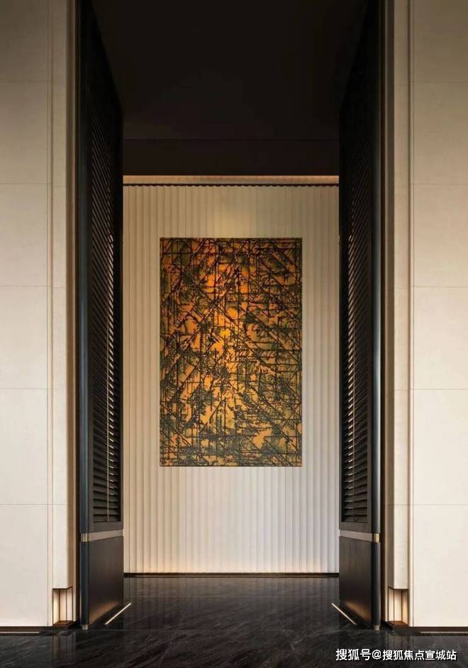 从高档材料的运用到开放式的空间布局,全屋奢石通铺,入户门厅匹配的是纹理低调的超白洞石搭配定制尺寸卡门,一眼看去,安全感满满。进门后,意大利进口石材全屋通铺,每一处地砖流水型纹路都能对应,需要提前至少2年预定的梅西同款进口芬迪白石材被用作电视背景墙,阔绰感不言而喻。
