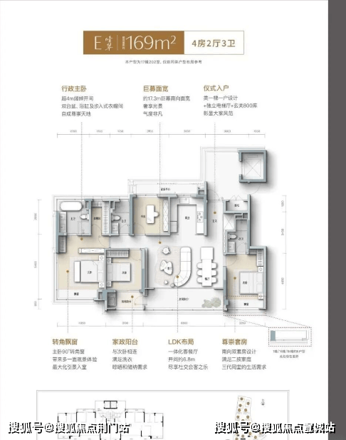 户型面积:规划建面约104-169㎡全龄改善户型,有3房2厅2卫、4房2厅2卫、4房2厅3卫等多种户型。