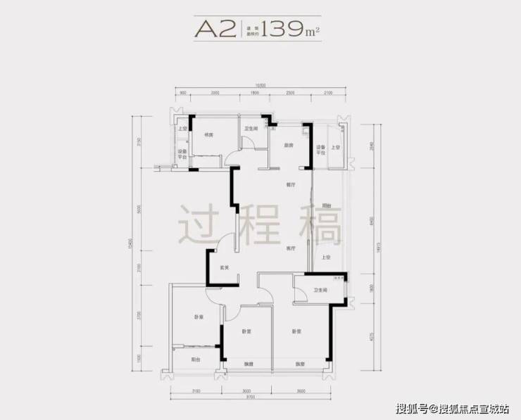 1)139方边套户型,4房2厅2卫,得房率87%
