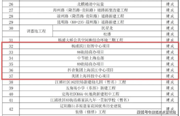 这份来自杨浦区官方公示的项目清单,清晰标注了从“新开工”“在建”到“建成”的全周期进度。其中,抖音、美团、滨江创智中心的全面建成,将杨浦滨江的发展确定性,从蓝图实实在在落地为实景。