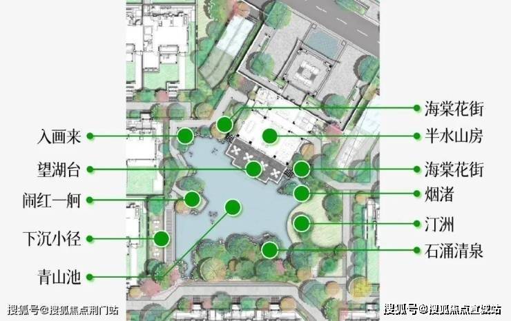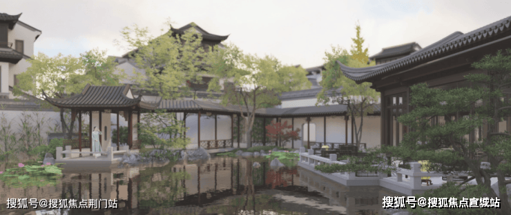 项目的园林,借鉴了苏州拙政园、东京旧芝离宫等的造园灵感,并糅合九溪烟树、西溪湿地等,形成「一溪两园三十景」把韵味悠长的诗境,在项目中再现。
