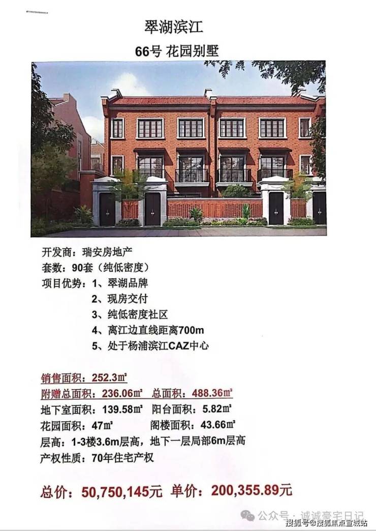 主力户型建面约160-410㎡叠加、联排联动价21万/㎡