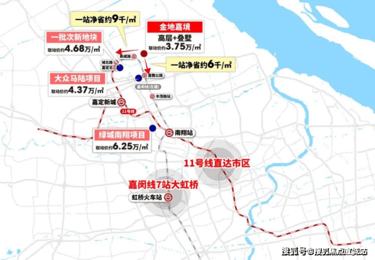 据规划,金地嘉境落址的嘉定新城徐行板块,被定位为科技城自主创新产业示范区,总投资约450亿,未来将建成约1.51平方公里的“科技小镇”。目前中科院应物所、中电科32所、华东计算机研究所等八所国家级科研院集结,同时还正在建造科嘉、盛创等示范园区,为高科技企业提供肥沃土壤。依托强有力的产业发展,以目前的发展势态,科创徐行将成为嘉定新城发展的一匹“大黑马”。