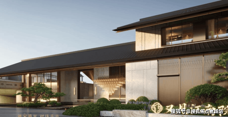 宋风与江南园林融合:项目大门采用江南宋风府门设计,融入香山帮非遗工艺(如细石匠、回纹雕刻)