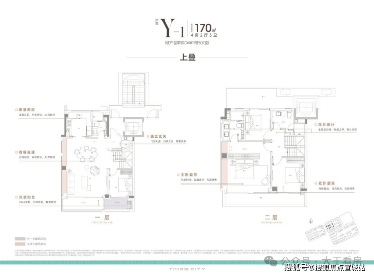 上叠产品创新采用南北双露台+南向双阳台布局,270度全景采光面让室内外空间完美融合。边套户型的1楼客餐厅和2楼主卧,更增设侧飘窗,将社区美景尽收眼底。