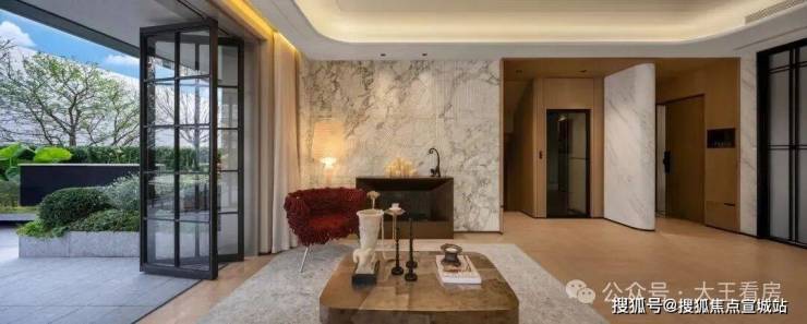 接下来是千万级别的酒店式高奢门头打造,二期的门头甄选688块珍贵的白雪公主玉石,恢弘气派,除了门头,立面和中间的景观亭都沿用大量玉石,彼此之间不再具有割裂感,而是融合打通。