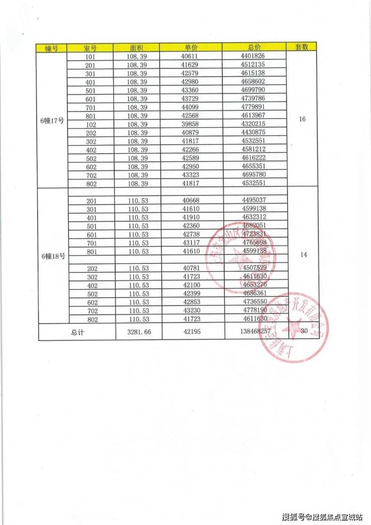上期一房一价表: