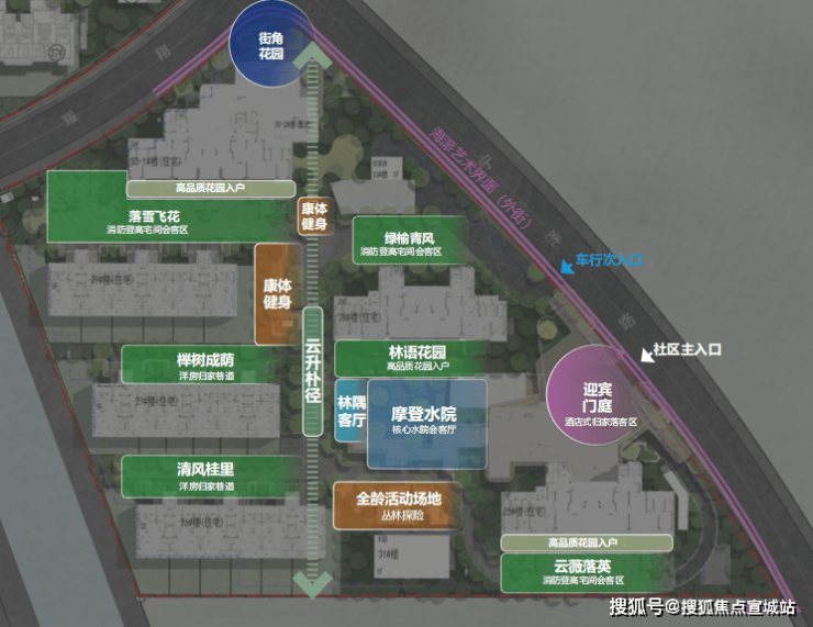 核心水院会客厅,你可以坐下来等人、和邻居聊天;林隅客厅,藏在树影里,夏天纳凉的好地方;全龄活动场地,孩子们在“丛林探险”区疯跑,你在旁边坐着看。