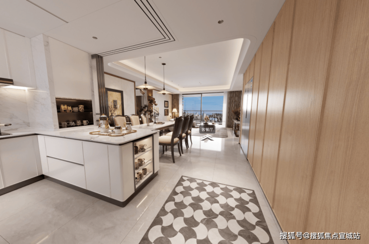 如果你是三口之家,想要极致的公区体验,那就让它完全打开:约6.5米的超大面宽,阳光从早晒到晚。孩子在客厅疯跑,大人在餐厅喝茶聊天,那种烟火气和社交感,是混在一起的。