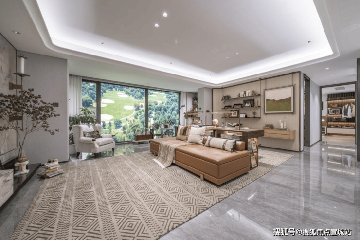 配置上,约2500㎡双会所+五维六巷沉浸式园林,恒温泳池、高尔夫模拟室、核心水院会客厅……这些放在10万+项目里都是顶配的东西,它全给你配齐了。