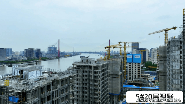 5#楼按照现场视野模拟,由于南侧1#楼的遮挡,若要纵览比较全的江景,需要20层及以上。