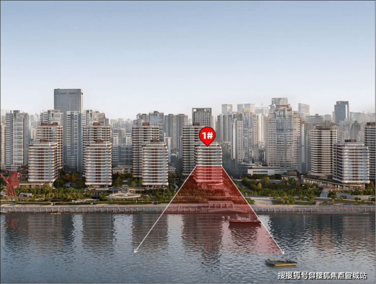 首先,一起来看1#楼的江景视野模拟效果:
