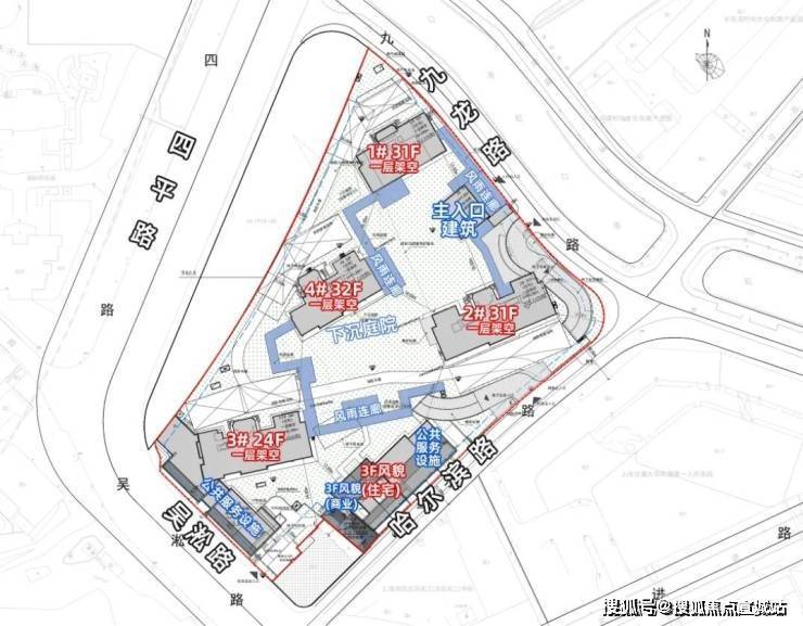 根据设计方案显示,项目拟建4幢24-31层高层住宅以及1幢总高3层的风貌建筑。