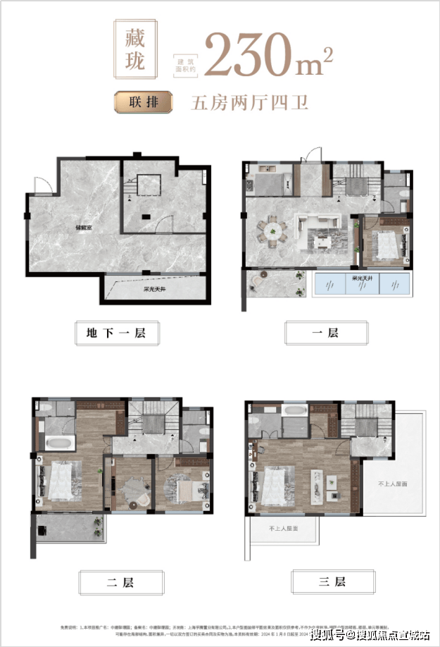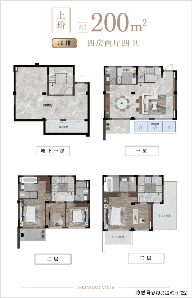 联排(200-230㎡四至五房):有天有地有庭院,230㎡五房四卫,大尺度空间,高端改善首选。