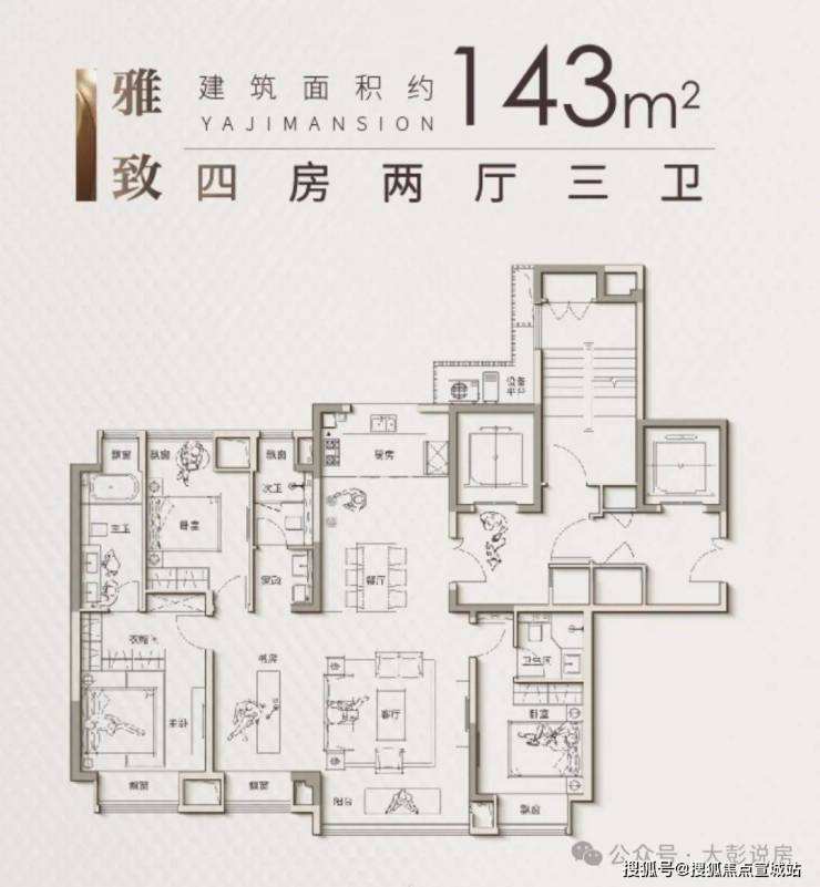 40㎡主卧/双套房设计/双台盆卫浴/多重收纳系统/超配全屋六+件设备平台/3个卫生间/美丽地库