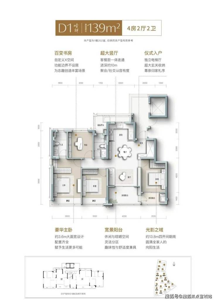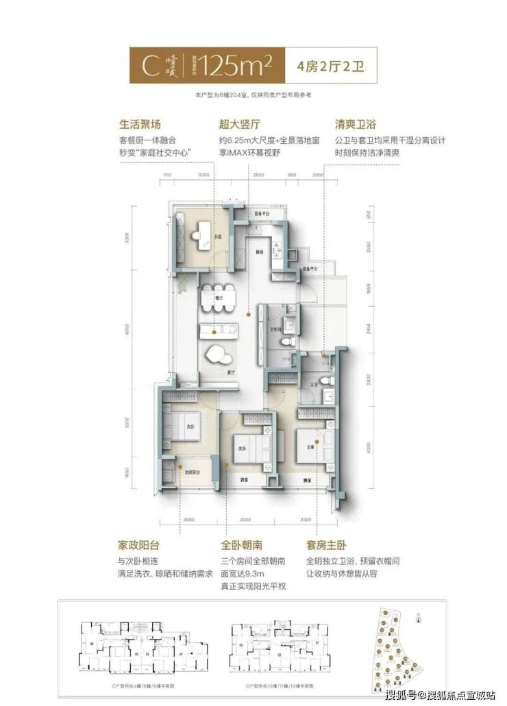 建面约105㎡晴光户型,不仅实现更优面积排布,更做到精神与审美的高度适配。在设计中,这间三房同样拥有南向大面宽,搭配S墙/开放式厨房/一体化餐客厅/多功能书房/酒店套房主卧等,将整个空间的开阔感和互动性做到极致,满足居住者对舒适、安逸的“精准需求”。