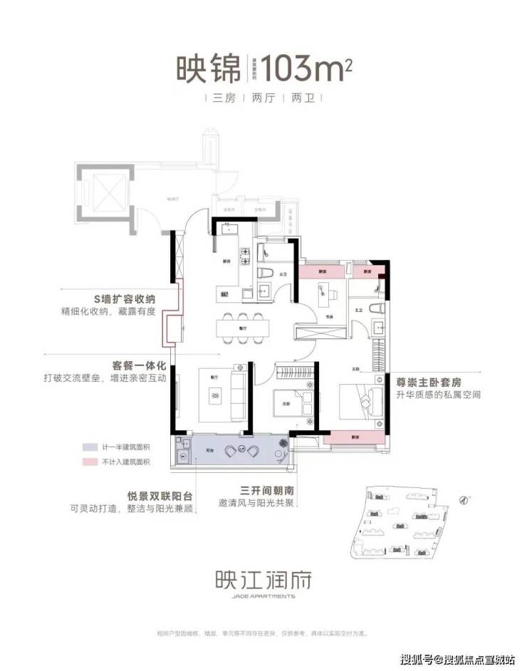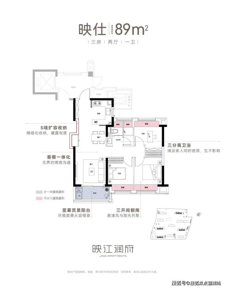 创新户型格局更是一大亮点,主推建面约89 - 103㎡三房,三分离卫浴、S墙收纳扩容、LDK一体化设计,实现了小户型大空间的极致利用。