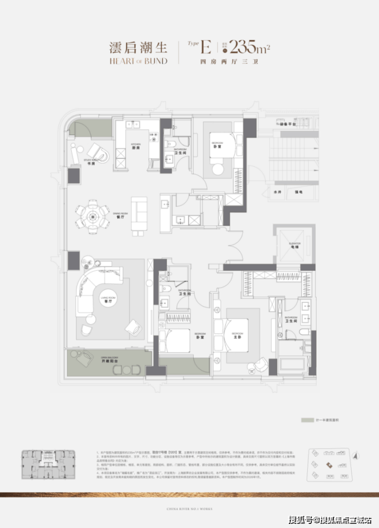 235㎡ 4 房 2 厅 4 卫(KING235 楼王):主力3000-3500 万,中低区2900-3200 万