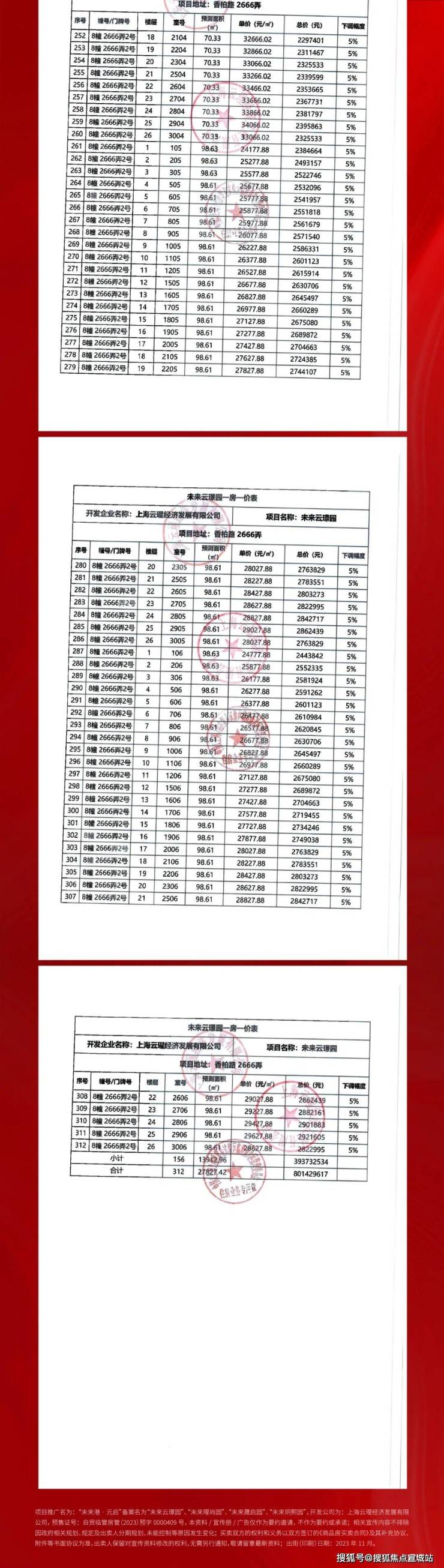 一房一价表: