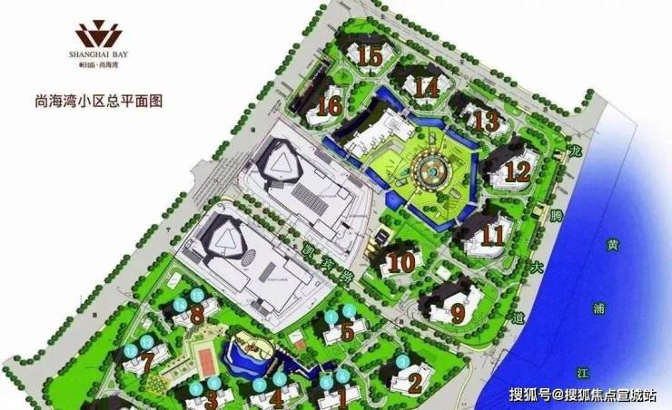 整个尚海湾项目地处徐汇滨江核心区域,占地约24.6万方,建筑面积约82万方,其中地上建筑面积约62.4万方。项目东至东安路、西临宛平南路、北靠瑞宁路,南面黄浦江;中间的凯滨路很自然地将项目分为了南、北两个地块,也就是我们为众人所说的非严格意义的一期和二期。整个项目由16幢住宅、2幢公建楼、一个下沉式商业广场和一个幼儿园组成。