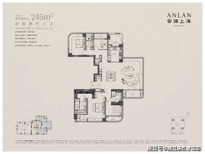 首先,不夸张的讲,✅✅安澜上海售楼处电话:400-8862-334✅✅建面约280㎡是我至今看过顶豪界最完美的四面宽全景舱户型。